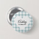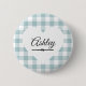 Valentine Heart Blue Gingham Name Monogram 6 Cm Round Badge