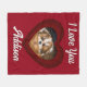 Valentine heart dog love Custom photo name on red Fleece Blanket