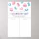 A fun poster to have at your gender reveal party! Illustration pink and blue heart-shaped macarons. The text says "What will our little sweetheart be?"