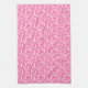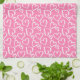 Kitchen towel is shown in a pink and white Valentine hearts print.