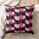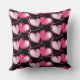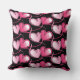 This throw pillow is shown in a black colour with a cute festive Valentine hearts print design in pink.
