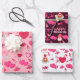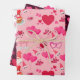 A Wrapping Paper Sheet Set For Valentines Day In White, Pink, Red Designs Of Balloons, Gnomes, Cupcakes
