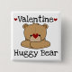 Valentine's Day button featuring an adorable brown teddy bear, red hearts, and text that reads "Valentine Huggy Bear"!