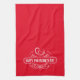 This kitchen towel is shown in a Happy Valentine's Day print.