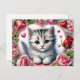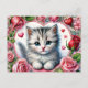 Valentine Kitten with Red Roses Postcard