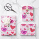 Valentine love birds pattern red and pink wrapping paper sheet
