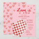 Perfect for celebrating love, laughter, and new beginnings, this invitation is more than just stationery—it’s the first glimpse your guests will have of the joyful gathering to come. With its vibrant colour palette of pink and red, its romantic heart motif, and its unique chequered design, it’s a versatile choice that works beautifully for bridal showers in any season.