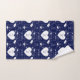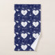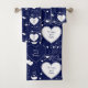 A bath towel set designed with a two names valentine pattern, white on navy blue. Customise the towels with your heart names, background colour, among other options.