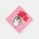 A Cute Pink Paper Napkin With A Penguin Holding Red Heart Shaped Balloons For Valentines Day Parties
