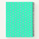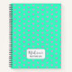 Personalised stylish notebook with your name, the title and date in elegant offblack calligraphy features a hand drawn bright pink hearts pattern on a bright green background. Perfect for sketching or keeping track of notes and ideas. Exclusively designed for you by Happy Dolphin Studio!