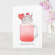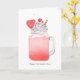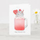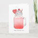 Illustration of a valentine's day extreme milkshake in a mason jar topped with whipped cream, sprinkles, a heart shaped cookie, and a cherry on top.