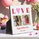Valentines Day Plaque in Red White with 2 photos, Cute LOVE Script in pink and red on white background. Use edit this design option to crop and adjust photos. Use square photos to replace. More products with this design are in the collection below.
