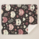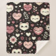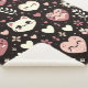 This kawaii cats, hearts and flower pattern has a variety of cute heart-shaped faces on a black background, adorned with little flowers and leaves. The blanket is a perfect gift for Valentine’s Day or Birthdays.
