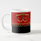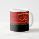 Valentine Sweetheart Mug with initials and gold hearts linked like a chain on red satin-look swirls and black background. For man or woman. Customise with your initials or names.