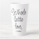 Celebrate love and friendhip with this Valentine's day latte mug, featuring the text 'Whole latte love' in black script calligraphy on a white background. Personalise this heartfelt gift with your name! Exclusively designed for you by Happy Dolphin Studio.