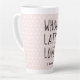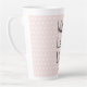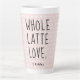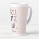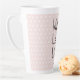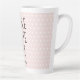 Celebrate love and friendhip with this Valentine's day latte mug, featuring the text 'Whole Latte Love' in black script on a pastel pink background adorned with a pretty little hearts pattern. Personalise this heartfelt gift with your name! Exclusively designed for you by Happy Dolphin Studio.