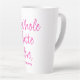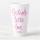 Celebrate love and friendhip with this Valentine's day latte mug, featuring the text 'Whole latte love' in bright hot pink calligraphy on a white background. Personalise this heartfelt gift with your name! Exclusively designed for you by Happy Dolphin Studio.