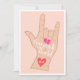 A cool you rock my world with a music rock sign hand illustration on editable salmon pink and heart, celebrate your valentine, boyfriend, best friends, or bestie with a modern script typography brush style.