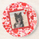 Falling red and pink hearts with cute border collie dog photo in frame.