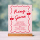 Valentines Cherry Bridal Shower Ring Game Acrylic Sign