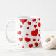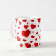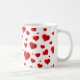 This ceramic coffee mug is shown with a Valentine's hearts print.
