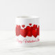 This ceramic coffee mug is shown with a Valentine's hearts print.