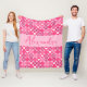 Valentines Cute Pink Heart and Flower Pattern Name Fleece Blanket