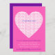 The vibrant pink background with a sleek vibrant purple backdrop creates a stunning contrast, making your invitations visually appealing. The big white heart, adorned with the repetition of "40th Birthday Party" in vibrant pink, adds an elegant touch.