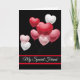 Valentine's Day card for a special friend in your life is shown with a black background and pretty Red, Pink and White Heart shaped balloons. Customise this card or buy as is.