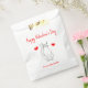 Valentine's Day Kids Classroom favour bag, with a winking kitty cat cartoon and red hearts design. With customisable red typography lettering, you can add your own text. A cute way for your child to enjoy a Valentine's Day Party holiday gift exchange.