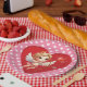 A Paper Plate Designed With Hearts And Valentines Day Cupid