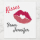 Celebrate the most romantic day of the year with this Valentine's Day Kiss wine bottle label that can be customised with your name. Label features the word Kisses in red script, an abstract set of pink lips, and black text for the name.