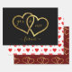VALENTINE'S DAY - FAUX GOLD FOIL: Three separate wrapping paper sheets, coordinated with cute red hearts. Sheets #1 can be customized with your names or personalized message. All background and text colors can be customized.