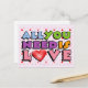 Anyone would love to receive this cute colourful retro All You Need Is Love postcard with hearts for Valentines Day or any day!