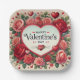 Valentine's Day Design with Roses and Hearts Paper Plate