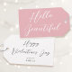 Add the finishing touch with personalized gift tags. This stylish design features "Hello Beautiful" in brush script typography, and can be customized with a name and a "Happy Valentine's Day" message. A versatile template that can be adapted for a birthday, bridal shower, bachelorette party, Galentine's Day, and other special occasions. Its simple, elegant design is a unique addition to your gift wrap, party favors and more. Printed colors: pink and white, or customize the background color with the design tool.