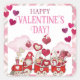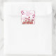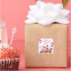 This cute, custom Valentine's day sticker features a pink and red watercolor design. An illustration of a little Valentine train with gnomes is pictured at the bottom. Severeal hearts accent the image. The border features a wholesome pink plaid pattern.