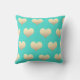 Valentine's Day Gold Heart Pattern Turquoise Teal Cushion