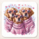 Valentines Day Golden Retriever Dogs Square Paper Coaster
