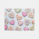 Valentine's day heart cookies on a blue background with sayings and decorations