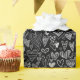 This black wrapping paper is covered with an assortment of decorative hearts. Perfect for Valentine's Day!