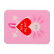 This awesome magnet features a digital art image of a cute axolotl, a Mexican Salamander, holding a red heart. The Axolotl is pale pink with huge black eyes and a big pink smile. It has bright pink feathery gills on the side of its head and a bright pink plume on its tail. There is pink text inside the heart that reads Love You a Lotl.