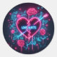 Valentine's Day Love Hurts Neon Heart Classic Round Sticker