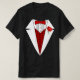 Fun tuxedo t-shirt for Valentine's day, sweetest day, anniversary or any occasion, dark or light colours. White tux collar with red heart vest and red bowtie with red rose corsage buttonierre. Also available on dark background t-shirts and apparel.