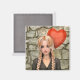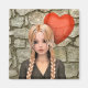 3D digital render of a beautiful teenager girl in a retro dress holding a balloon in a heart form on a stone wall background. Perfect Valentine's Day gift
