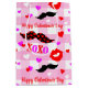 Cute Valentine's Day, customisable gift bag with moustaches, red lips, hearts, hugs and kisses and a Happy Valentine's Day message on a pink gingham pattern. Add coordinating tissue paper to quickly wrap a gift for your sweetheart!