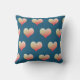 Valentines Day Ombre Gold Heart Pattern Ocean Blue Cushion