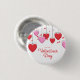 Beautifully vector illustrated Valentine's Day button depicting pink and red hearts on black strings (front and back) with "Happy Valentine's Day" type.