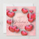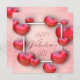 Happy Valentine's Day festive sparkle glitter light pastel pink rose background illustration with red realistic 3D hearts and white frame. Text written in modern script letters.