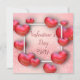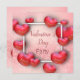 Happy Valentine's Day festive sparkle glitter light pastel pink rose background illustration with red realistic 3D hearts and white frame. Text written in modern script letters.